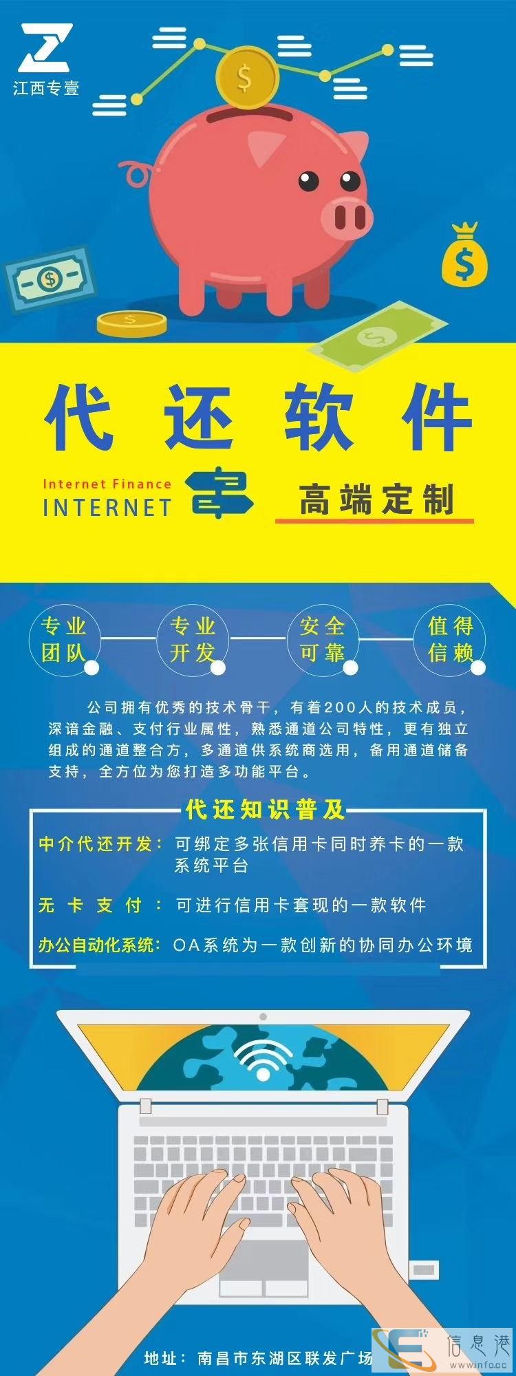 企业代还系统:(专门为中介,制定开发的软件)优势:1.帮助中介省去人工时间成本。2. 后台设置计划,无需人工操作还款,智能还款。3. 中介还款效率变高4. 后台可以做到,查实时出账单日-还款日。5. 系统客户根据还款时间需要自行给用户设置计划6. 手续费 。7. 推广范围广,推广力度大。8. 后台服务客服:只需做到和客户对接,方便快捷。9. 后台可以选择落地商户和非落地商户,做到精。10. 客户统一后台管理,系统客户实时把握客户情况。11. 再多的客户,导入后台,轻松解决问题。公司新增业务共享充电宝,有需要做代理的朋友看过来让时间变得更加宝贵,赚更多的钱吧!